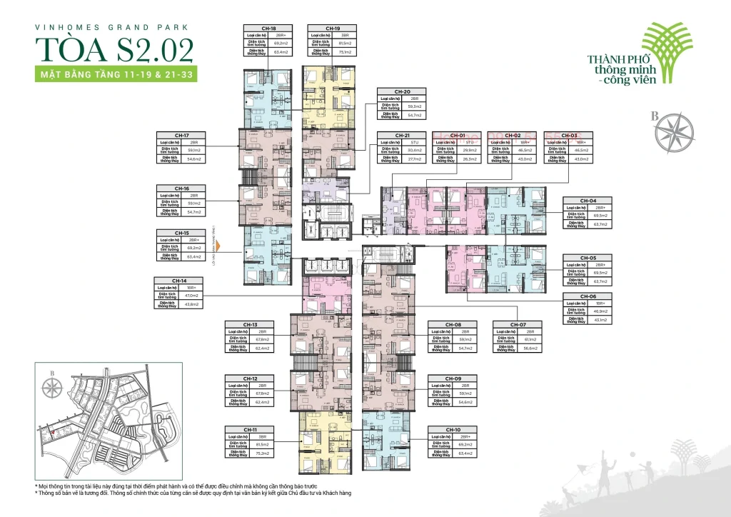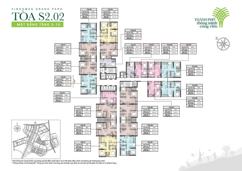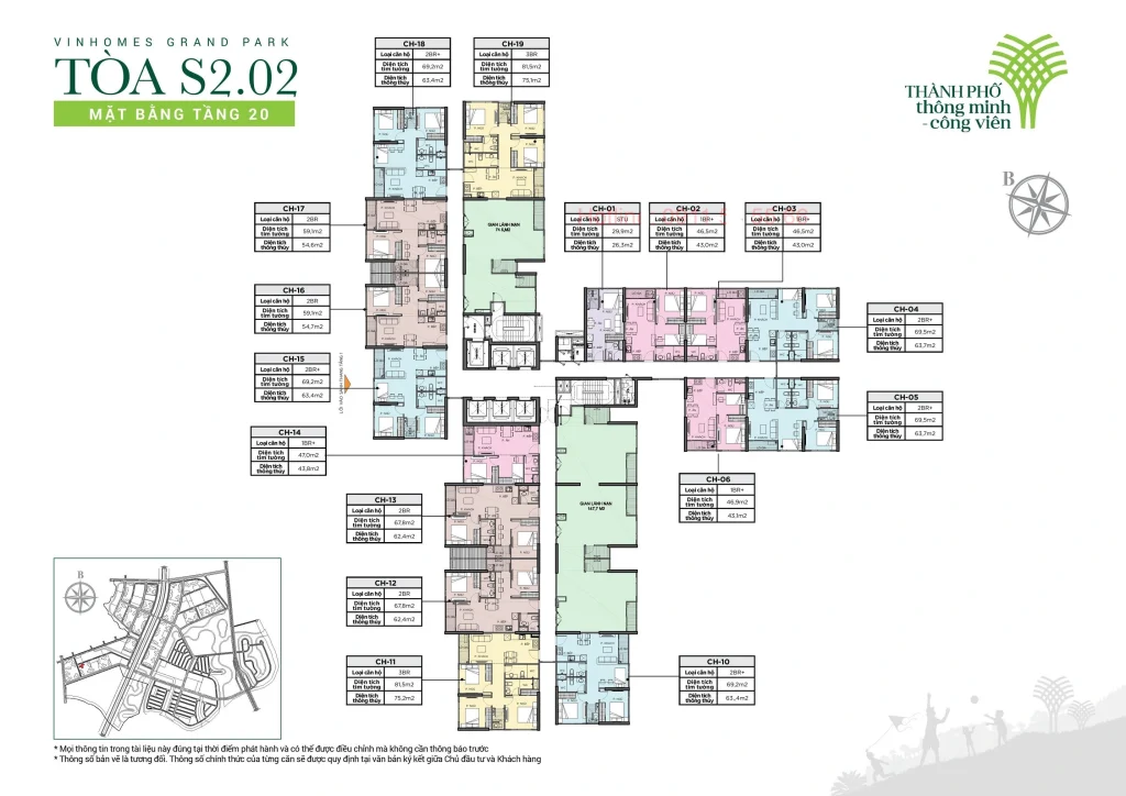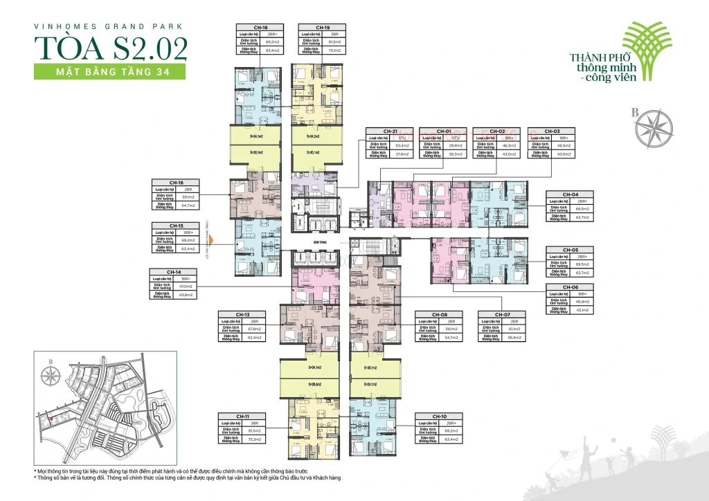 Mặt băng tòa S2.02 phân khu The Rainbow thuộc đại đô thị Vinhomes Grand Park