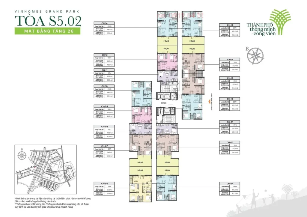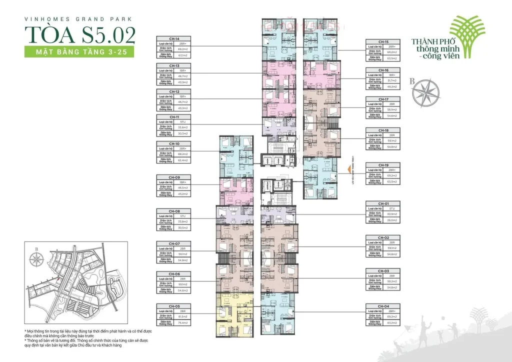 Mặt băng tòa S5.02 phân khu The Rainbow thuộc đại đô thị Vinhomes Grand Park