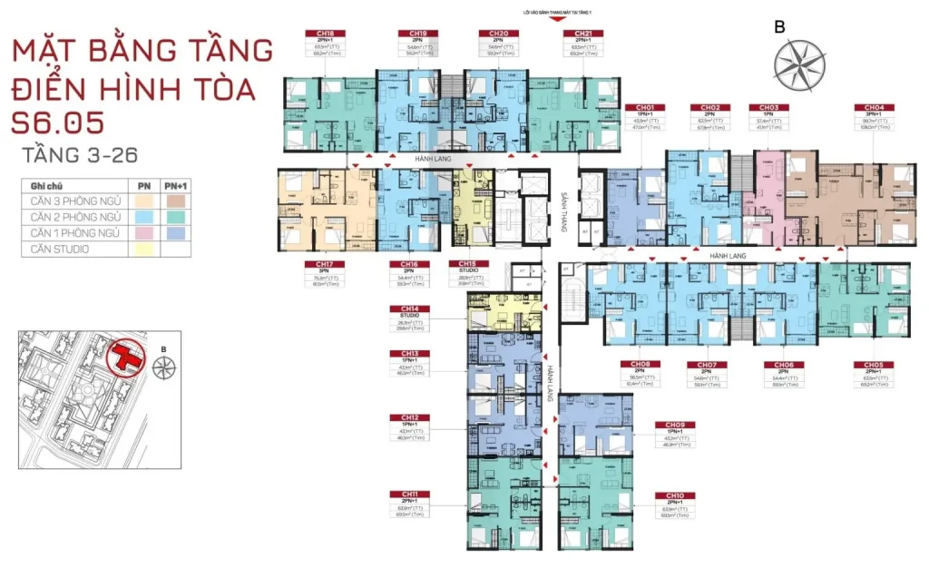 Mặt băng tòa S6.05 phân khu The Origami ( phân khu vườn nhật) thuộc đại đô thị Vinhomes Grand Park