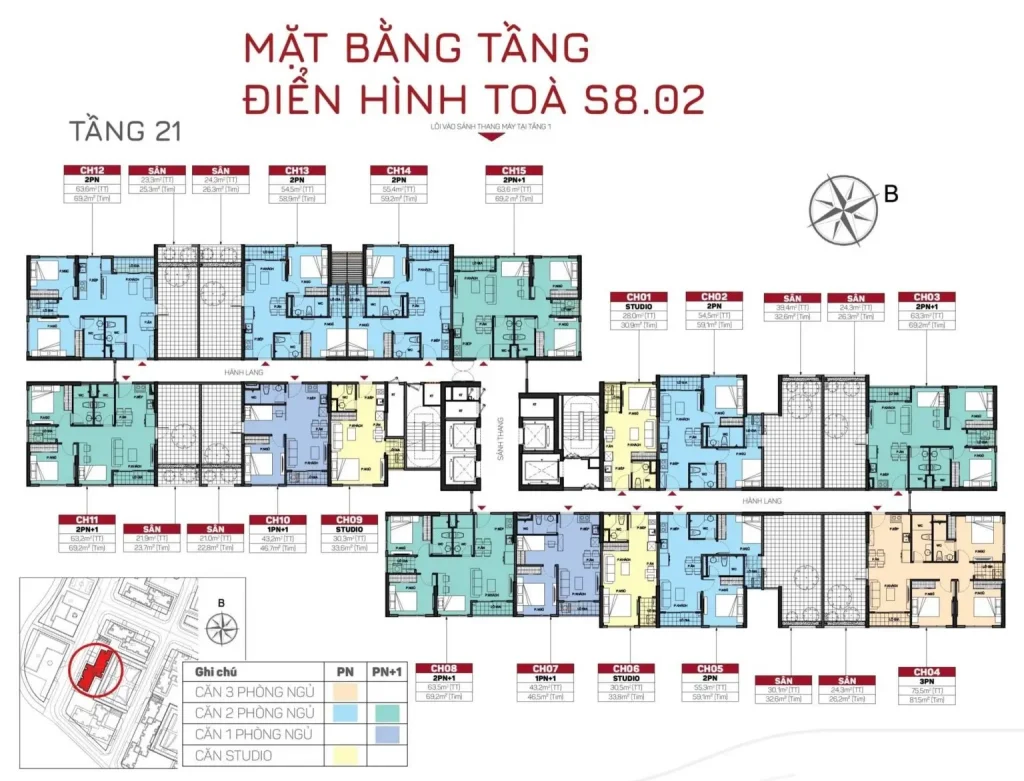Riêng tầng 21.Mặt bằng sẽ có chút thay đổi như sau