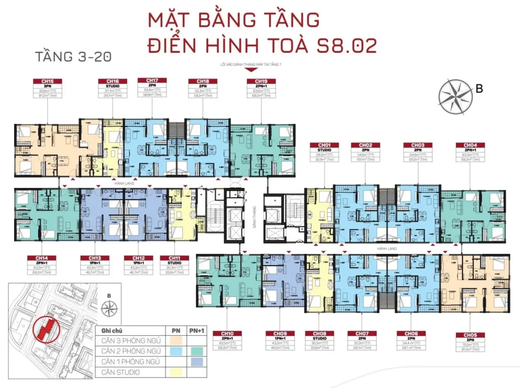 Mặt băng tòa S8.02 phân khu The ORIGAMI thuộc đại đô thị Vinhomes Grand Park